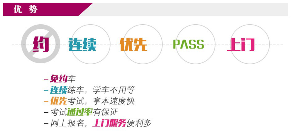 本班型,无须自己约车,科目一考试通过后,连续为您安排科目二的训练时间,7个半天结束科目二的所有课程。